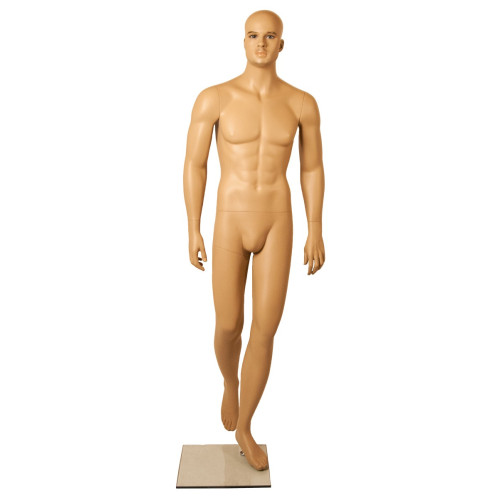 Our Male Premium Walking Mannequin has a Mediterranean skin tone which is stylish, sleek and is sure to stand out in any retail environment. Careful attention has been given to facial features and expressions to create a mannequin as realistic as possible. The matt finish gives the mannequin a stunning look and avoids light reflection on your displays.This mannequin is made of high quality fiberglass assuring durability. The mannequin is supplied with a 10mm thick square sturdy glass base assuring stability and a dual purpose spigot for calf and leg allowing flexibility in your display.